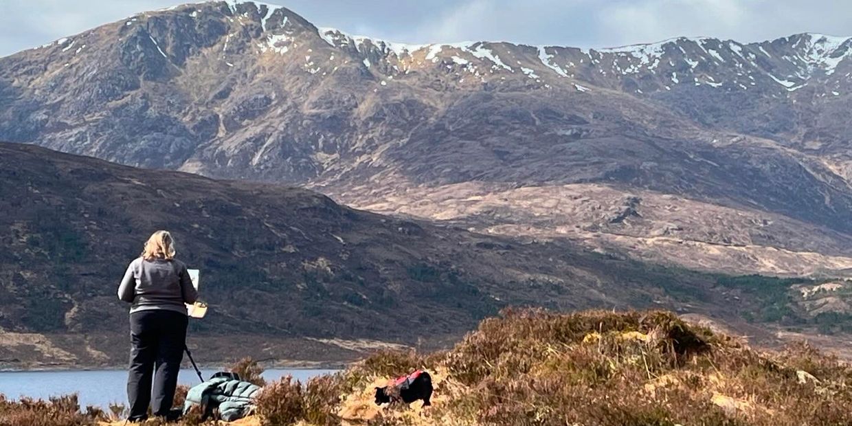 If only it was always like this - standing on a mountain top in front of my easel with my little dog at my side!